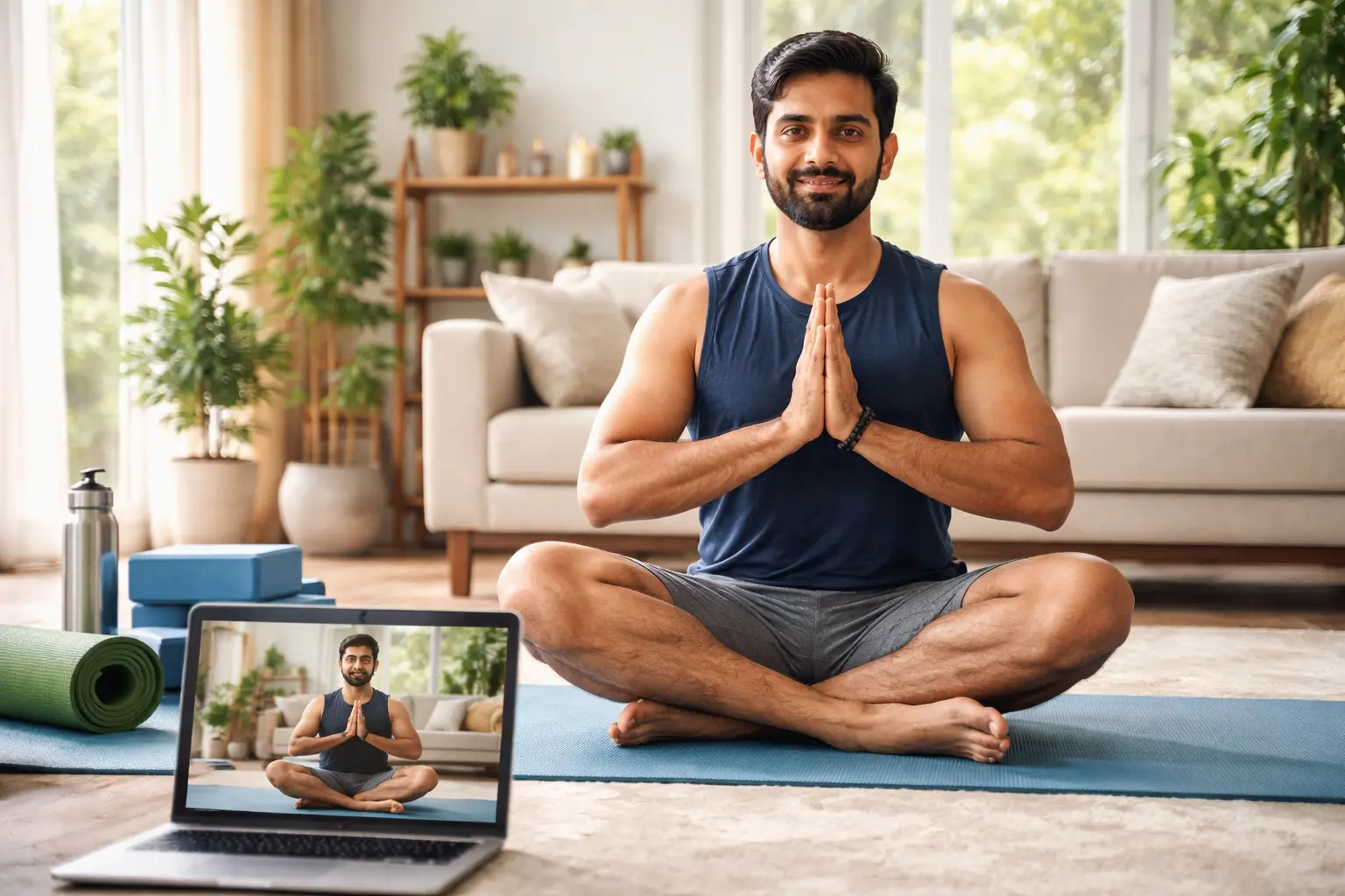 Joining an online yoga class with PRANAFIT YOGA is simple and convenient! To get started, you’ll need a few essentials to ensure a smooth and enjoyable experience. First, a comfortable yoga mat is key for support and stability during your practice. Keep a water bottle nearby to stay hydrated throughout the session. A reliable internet connection is important to stream the class without interruptions.